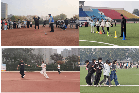 组则兼顾个人竞技与团队协作,既有短跑、长跑、接力赛、跳远、实心球投掷、引体向上、仰卧起坐、跳绳等展现个人实力的项目,也有拔河这样考验集体凝聚力的比拼,更有“共渡难关”“众星捧月”“袋鼠接力”等充满欢乐的趣味挑战。老师们暂别三尺讲台,奔赴赛场与学子们并肩,共享运动带来的热血与喜悦;同学们朝气蓬勃、奋勇争先,以饱满热情投入各项赛事,尽显青春活力与团结风采;志愿者们默默坚守、竭诚服务,用无私奉献为运动会筑牢后勤保障,成为赛场之上最动人的风景线。