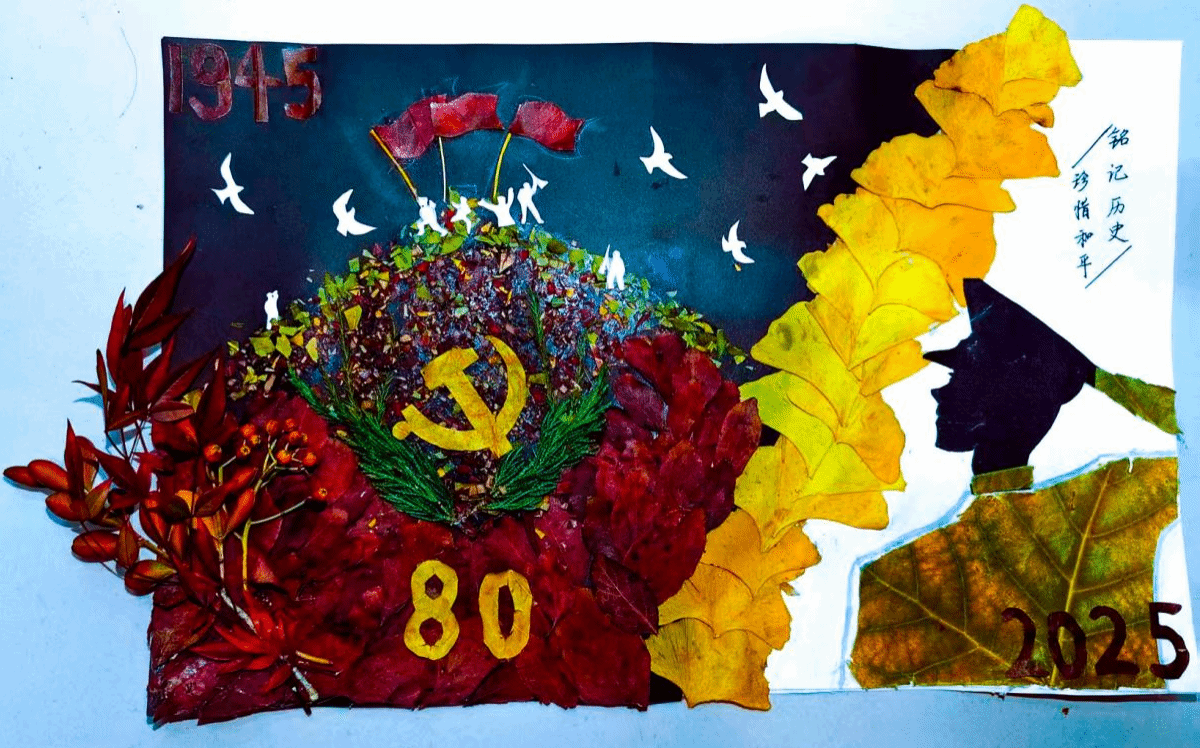 此次活动以“金秋盼落叶,和平映山河”为主题,鼓励师生利用校园内的落叶、枯枝等自然素材,通过剪、贴、拼、叠等手法,创作出兼具思想性与艺术性的和平主题作品。同学们热情高涨,纷纷走进校园角落收集素材,有的以落叶为笔勾勒安宁图景,将白鸽、橄榄枝等和平符号与铁塔湖、明伦堂等校园风光相融,定格岁月静好;有的以自然为卷讲述和平愿景,用不同形状、颜色的叶片组合成携手同行的身影、守望相助的瞬间,传递对安宁生活的珍视;还有的结合专业特色,将分子结构、生态循环等51吃瓜