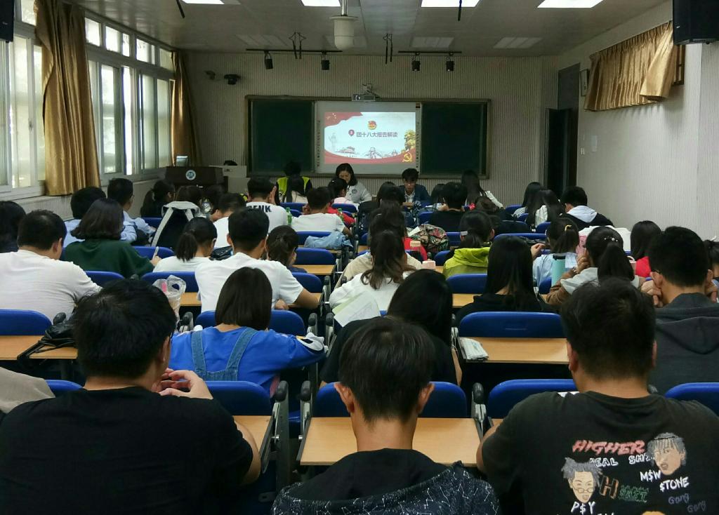 团课伊始,郭佳带领全体与会人员共同回顾了近期的重大会议,并讲述了本次宣讲的主题。她首先向与会人员解读中国共产主义青年团第十八次全国代表大会的精神要点。团的十八大是在中国特色社会主义进入新时代,亿万团员青年紧跟党、紧跟习近平总书记,意气风发迈上新征程、走向民族复兴重大历史时期召开的一次十分重要的会议。当代青年生逢强国时代,肩负强国使命,要在党的领导下,坚定传承中国道路、中国精神、中国力量,奋勇投身党的十九大绘就的宏伟蓝图。