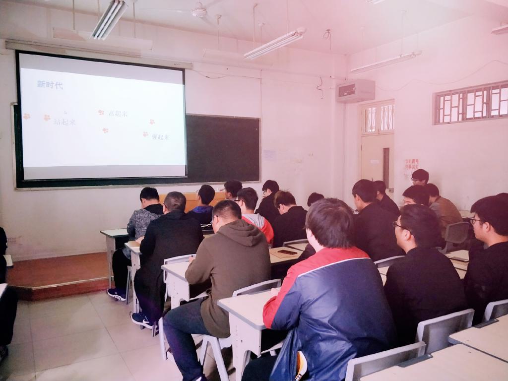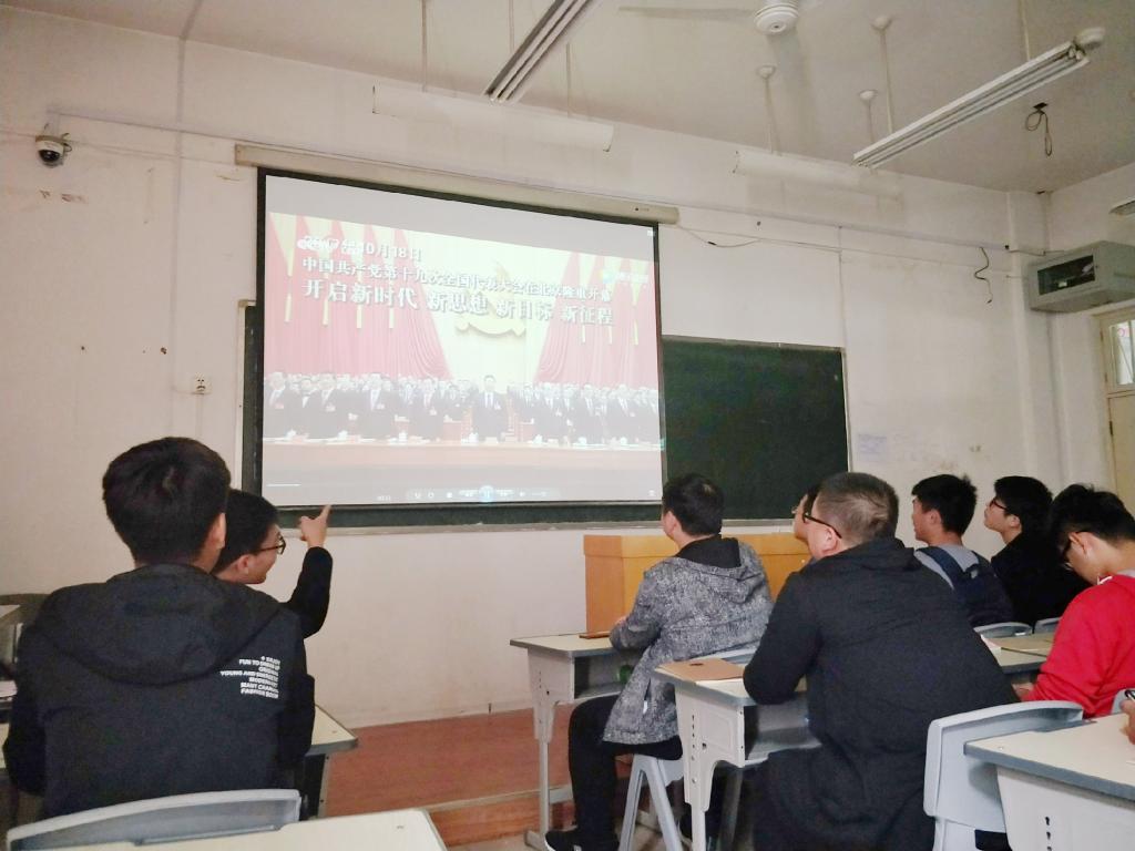 团支书以PPT及问答形式为大家讲解十九大,并带领大家观看“习近平总书记为你描绘新时代”的视频,再请同学上台讲述感悟,分享自己的中国梦,畅谈对本专业的认识及看法。